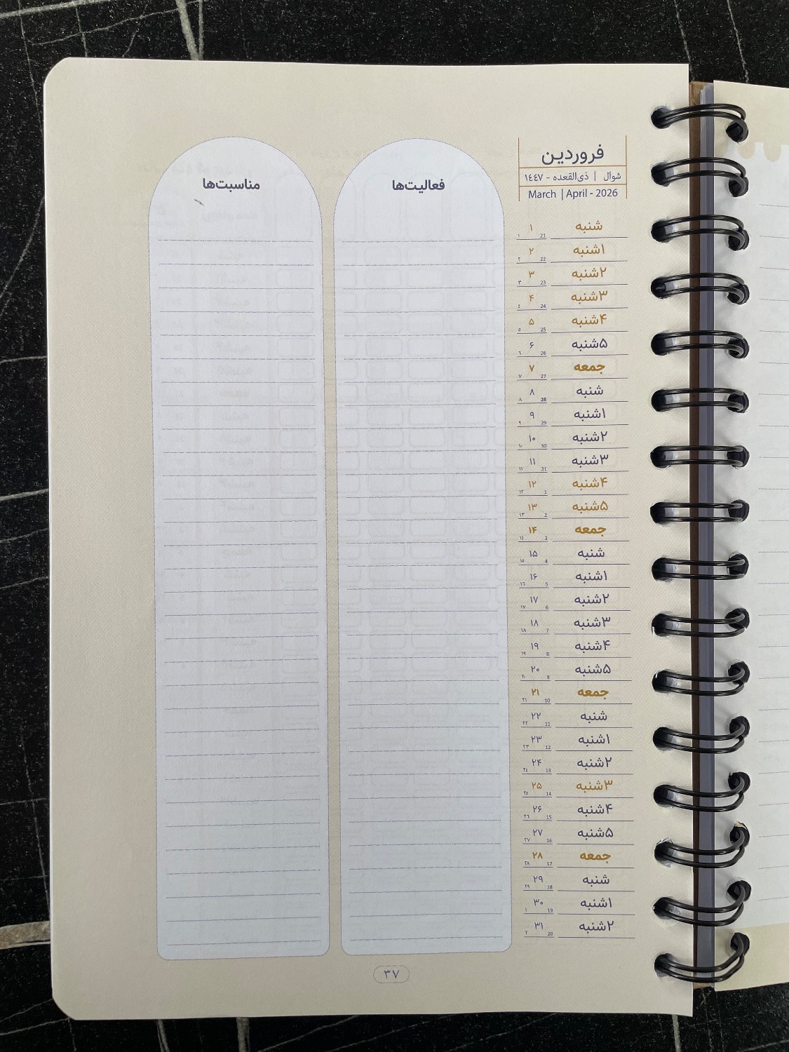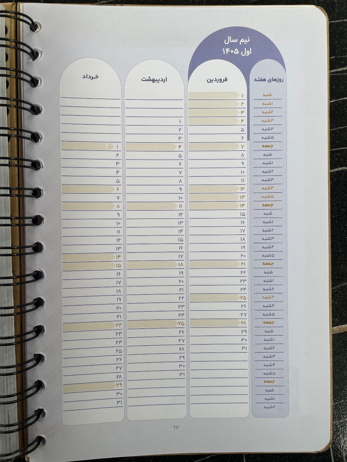 دفتر برنامهریزی ۱۴۰۵ از فروردینماه سال جدید آغاز شده و تا پایان اسفند را بهطور کامل پوشش میدهد.